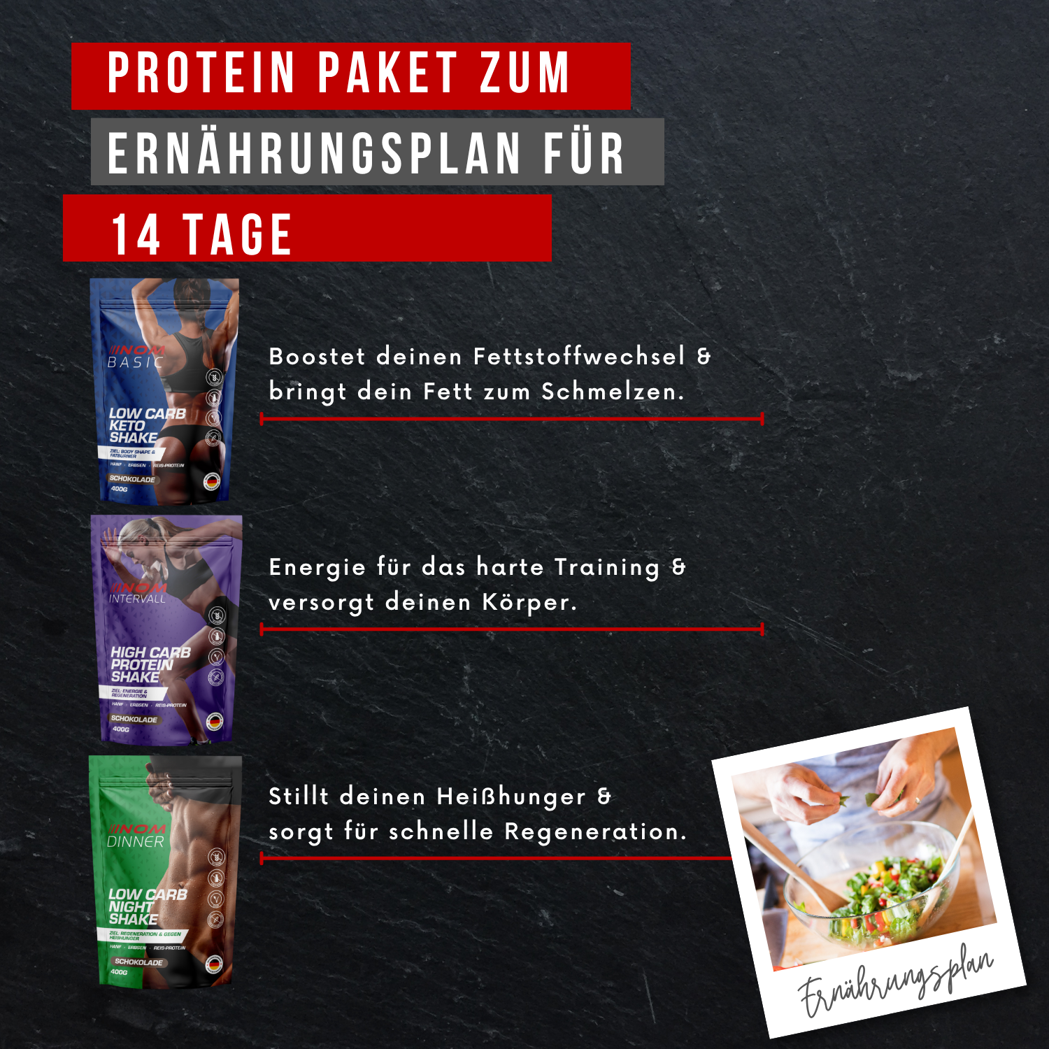 Um das Maximum aus seinem Körper herausholen zu können, ist eine gezielte Nahrungsergänzung sehr wichtig. Ich verwende dazu die Produkte von NOM Training, also NOM Sportsfood.